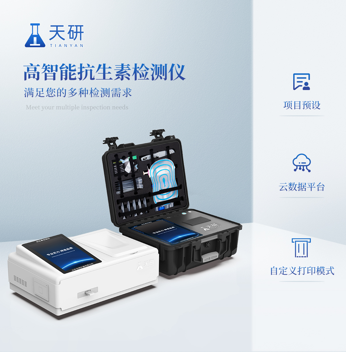 產(chǎn)品介紹: 山東天研儀器有限公司生產(chǎn)的箱式抗生素檢測(cè)儀為集成化食品安全快速檢測(cè)分析設(shè)備,采用臺(tái)式一體化設(shè)計(jì),可快速檢測(cè)200多種食品安全項(xiàng)目,包含非食用化學(xué)物質(zhì)、濫用食品添加劑、農(nóng)藥殘留、獸藥殘留、重金屬、病害肉、營(yíng)養(yǎng)強(qiáng)化劑、抗生素類(lèi)殘留、激素類(lèi)殘留、真菌毒素類(lèi)殘留、化學(xué)類(lèi)殘留等項(xiàng)目的定性
