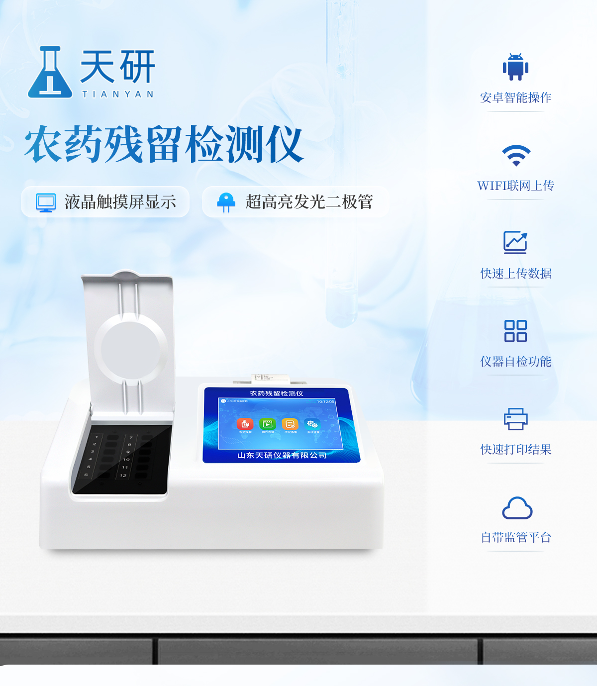 廣泛應用于主要用于蔬菜、水果、茶葉、糧食、農副產(chǎn)品等食品中有機磷和氨基甲酸酯類農藥殘留的快速檢測;此外還可用于果蔬茶生產(chǎn)基地和農貿批發(fā)銷售市場現(xiàn)場檢測,餐館、學校、食堂、家庭果蔬加工前的安全速測等。