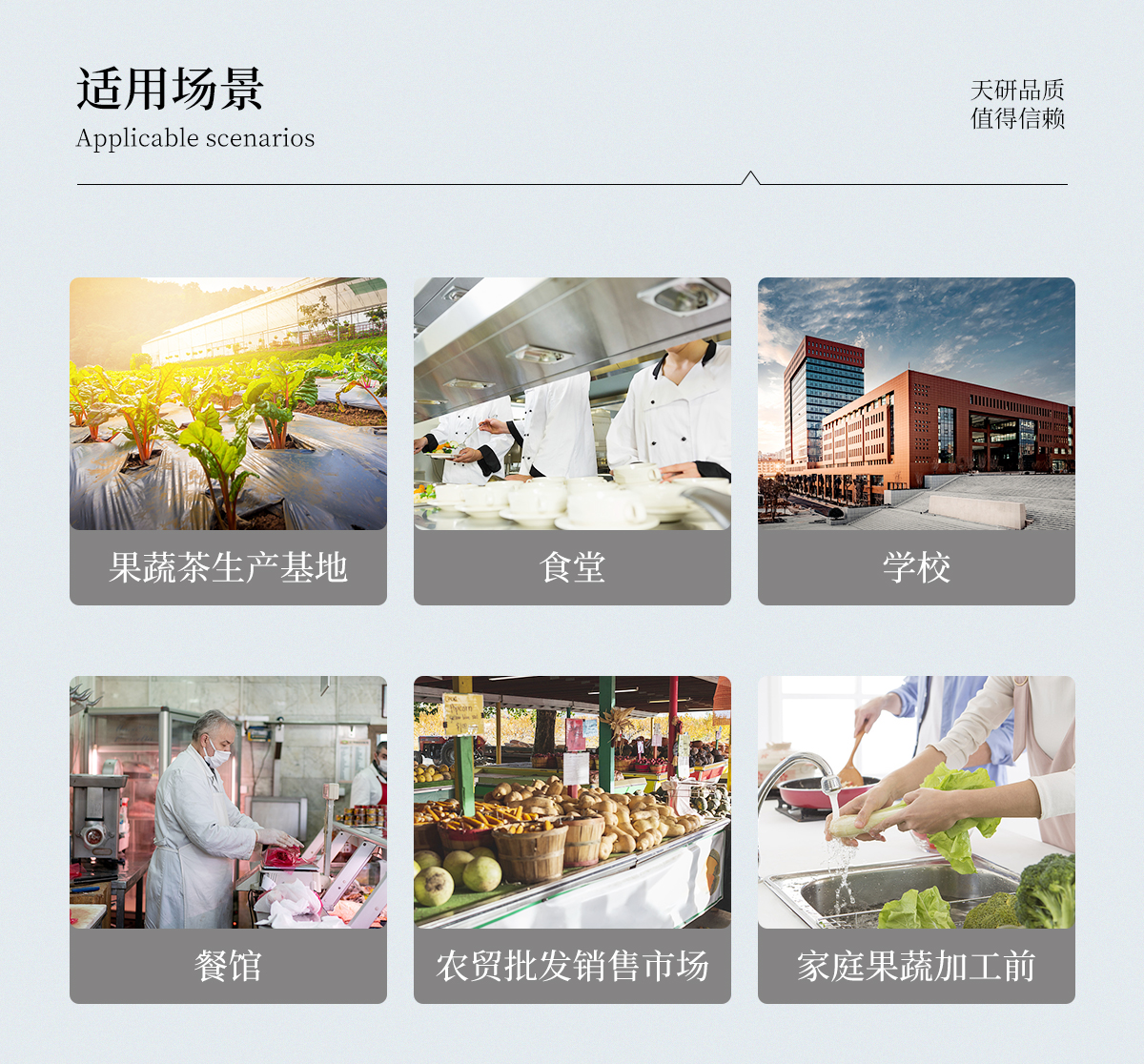 廣泛應(yīng)用于主要用于蔬菜、水果、茶葉、糧食、農(nóng)副產(chǎn)品等食品中有機(jī)磷和氨基甲酸酯類農(nóng)藥殘留的快速檢測;此外還可用于果蔬茶生產(chǎn)基地和農(nóng)貿(mào)批發(fā)銷售市場現(xiàn)場檢測,餐館、學(xué)校、食堂、家庭果蔬加工前的安全速測等。