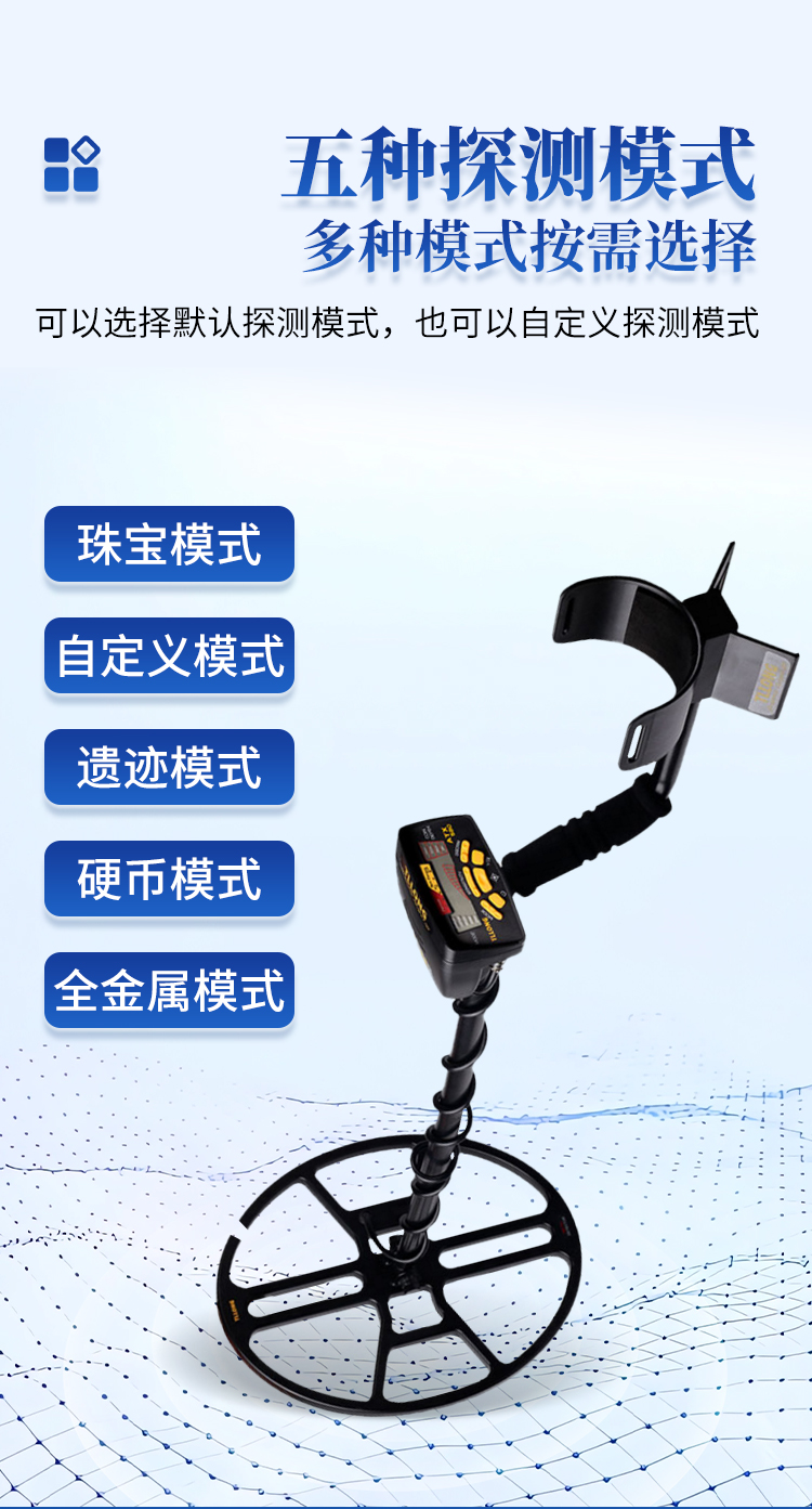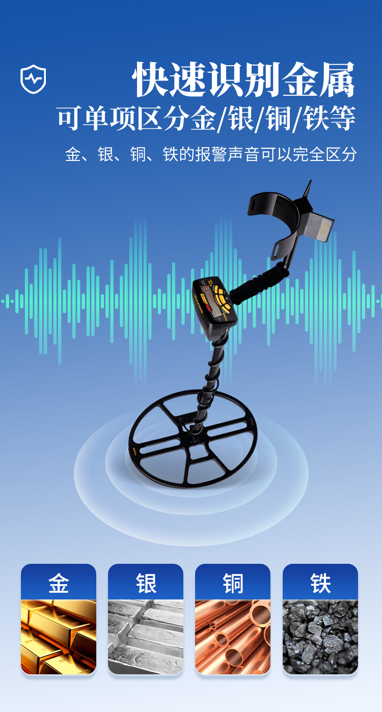 | 操作方式:地平衡/識別 | 發(fā)射頻率:6.99KHz | 音頻頻率:437Hz | 功 率:約2.5W | 電 源:11.1V4Ah鋰離子電池 | 標(biāo) 配:充電器、耳機(jī)、探測盤 | 探測盤尺寸:探測盤(直徑390mm) |
