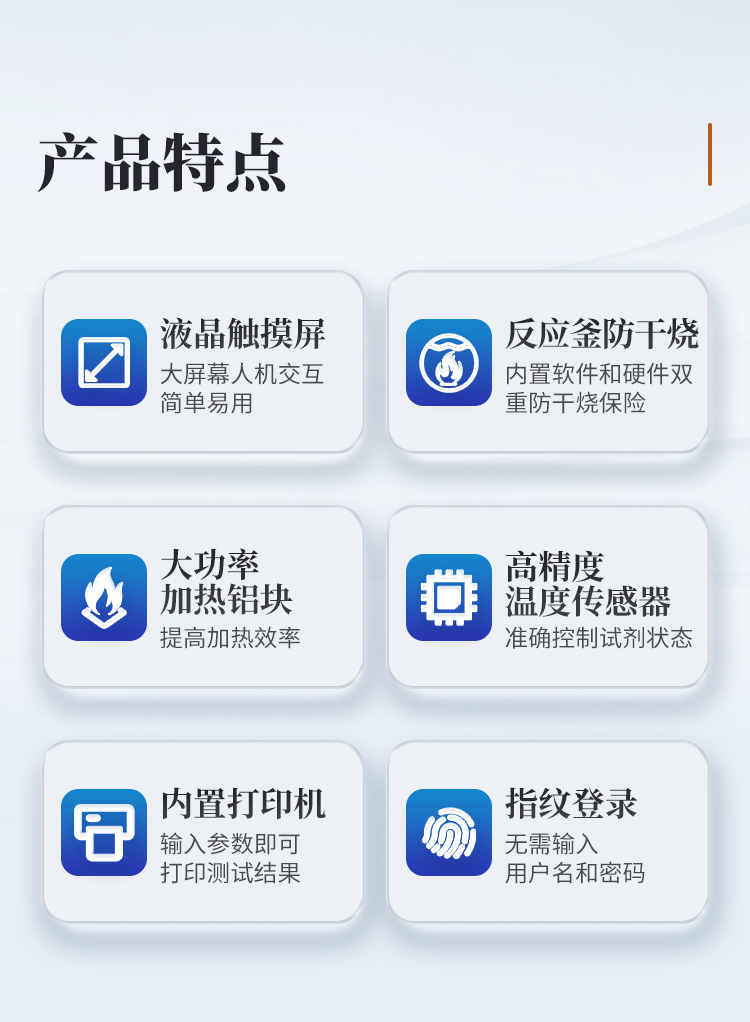 | 1. ☆采用濾袋技術(shù),濾袋孔徑25μm | 2. 耐腐蝕、耐高壓、特殊處理消煮鍋,安全可靠,經(jīng)久耐用 | 3. 彩色液晶觸摸屏,界面簡潔,操作簡單 | 4. ☆全自動測試過程,包括自動添加各種試劑、消煮、加熱、控溫、定時攪拌、清洗和排廢,無需人員值守 | 5. ☆**間歇攪拌技術(shù),模擬手工攪拌,使樣品處理更均勻,攪拌徹底、均勻,無試劑漏液風險,安全可靠,攪拌速度15圈/分鐘,間歇周期1分鐘 | 6. **批處理能力,批處理能力為30個/批,效率高,節(jié)省試劑 | 7. ☆自動根據(jù)樣品數(shù)量添加試劑,降低使用成本 | 8. 獨立的酸液、堿液、蒸餾水耐腐蝕精密加液泵,使用可靠,更安全 | 9. 全面的監(jiān)控配置,包括試劑量、溫度、壓力監(jiān)測 | 10. ☆儀器內(nèi)置250組用戶自定義測試方案,使用更簡潔 | 11. 儀器具備定時啟動功能,測試更方便 | 12. ☆儀器采用高壓密閉測試,無需冷卻水,節(jié)水環(huán)保 | 13. 儀器可以直接在普通實驗室環(huán)境,無需通風櫥 | 14. 儀器內(nèi)部無危險的玻璃材質(zhì)器件,安全可靠 |