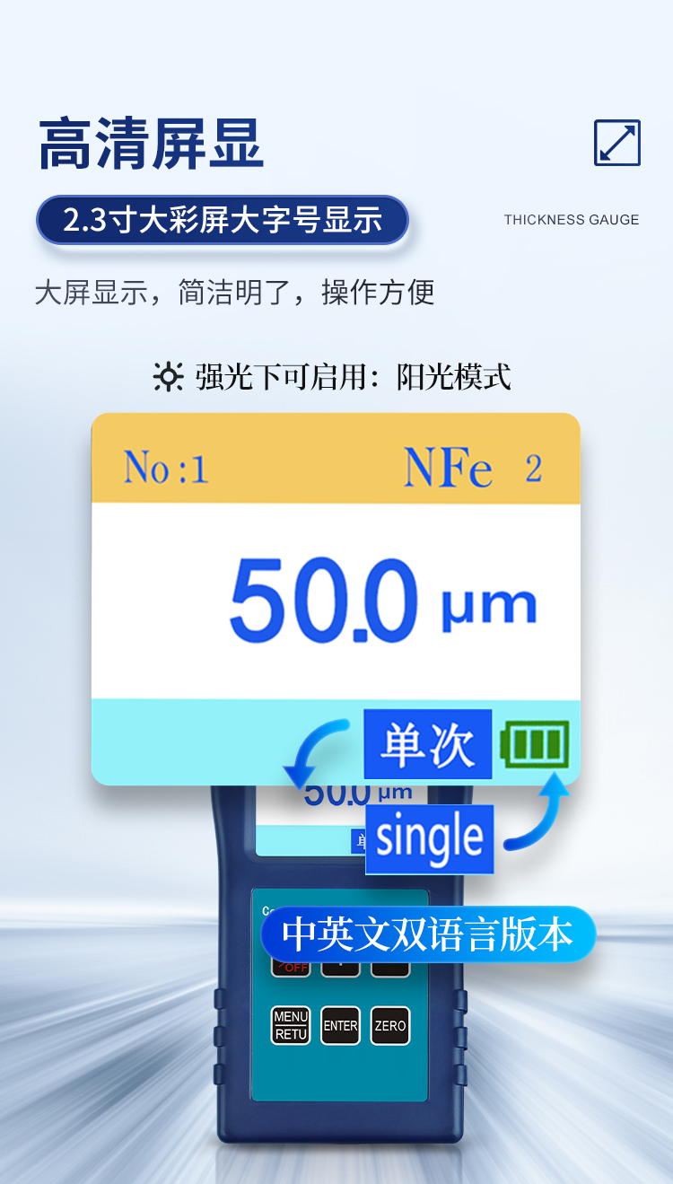高精度:超聲波測(cè)厚儀通常具有高精度,可以測(cè)量材料的厚度變化小至數(shù)微米。