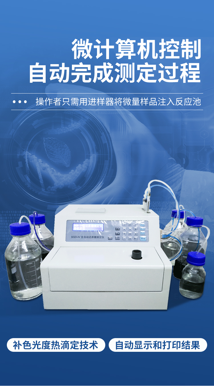 全自動還原糖測定儀是根據(jù)費林試劑測定原理設(shè)計而成的,其原理與目前國家標(biāo)準(zhǔn)一致。IV型全自動還原糖測定儀實現(xiàn)試劑泵、滴定泵自動排氣泡,操控更方便;采用精密部件優(yōu)化設(shè)計,準(zhǔn)確度更高;測定時間縮短至3分鐘以內(nèi),測定速度更快;液晶屏顯示更直觀。