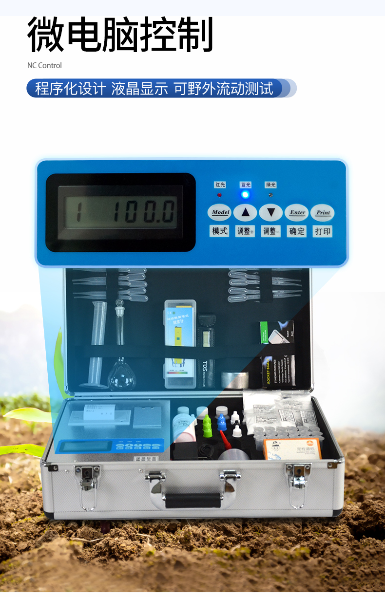產(chǎn)品簡介: 配套齊全:該儀器集藥、器、儀為一體,攜帶方便,相當于一個小型移動實驗室,無需用戶自配附件,亦可靈活野外流動測試。適于農(nóng)業(yè)服務部門或農(nóng)資經(jīng)銷商、高教院校、科研院所、合作社、肥料廠商、大種植戶測土施肥和鑒別肥料真假及環(huán)保檢測應用。 檢測功能全:測試項目國內(nèi)外全面,除標