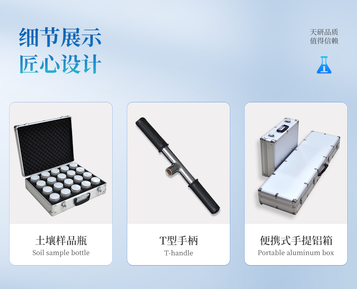 | 規(guī)格:標(biāo)準(zhǔn)配置采樣深度2米,詳細(xì)參數(shù)見(jiàn)下 | 特點(diǎn):可在不同土壤質(zhì)地采樣、拆卸方便、體積小便于戶外攜帶 | 用途:在土壤采樣過(guò)程中,會(huì)遇到不同土壤質(zhì)地,比如:粘土、壤土、沙土和泥炭土。為了達(dá)到更好的采樣效果,應(yīng)該根據(jù)不同土壤質(zhì)地,選擇合適的鉆頭?,F(xiàn)提供以下四種鉆頭,可以采集不同質(zhì)地土壤表層0-20cm的樣品,也可用于深層采樣。 | 標(biāo)準(zhǔn)配置:心型黏土鉆1個(gè)、心型壤土鉆1個(gè)、心型沙土鉆1個(gè)、筒型泥炭鉆1個(gè)、100cm延長(zhǎng)桿2個(gè)、50cm延長(zhǎng)桿1個(gè)、T型手柄1個(gè)、刮刀1把、扳手2個(gè)、3米鋼卷尺1個(gè)、手套1副、鋁箱包裝。 |