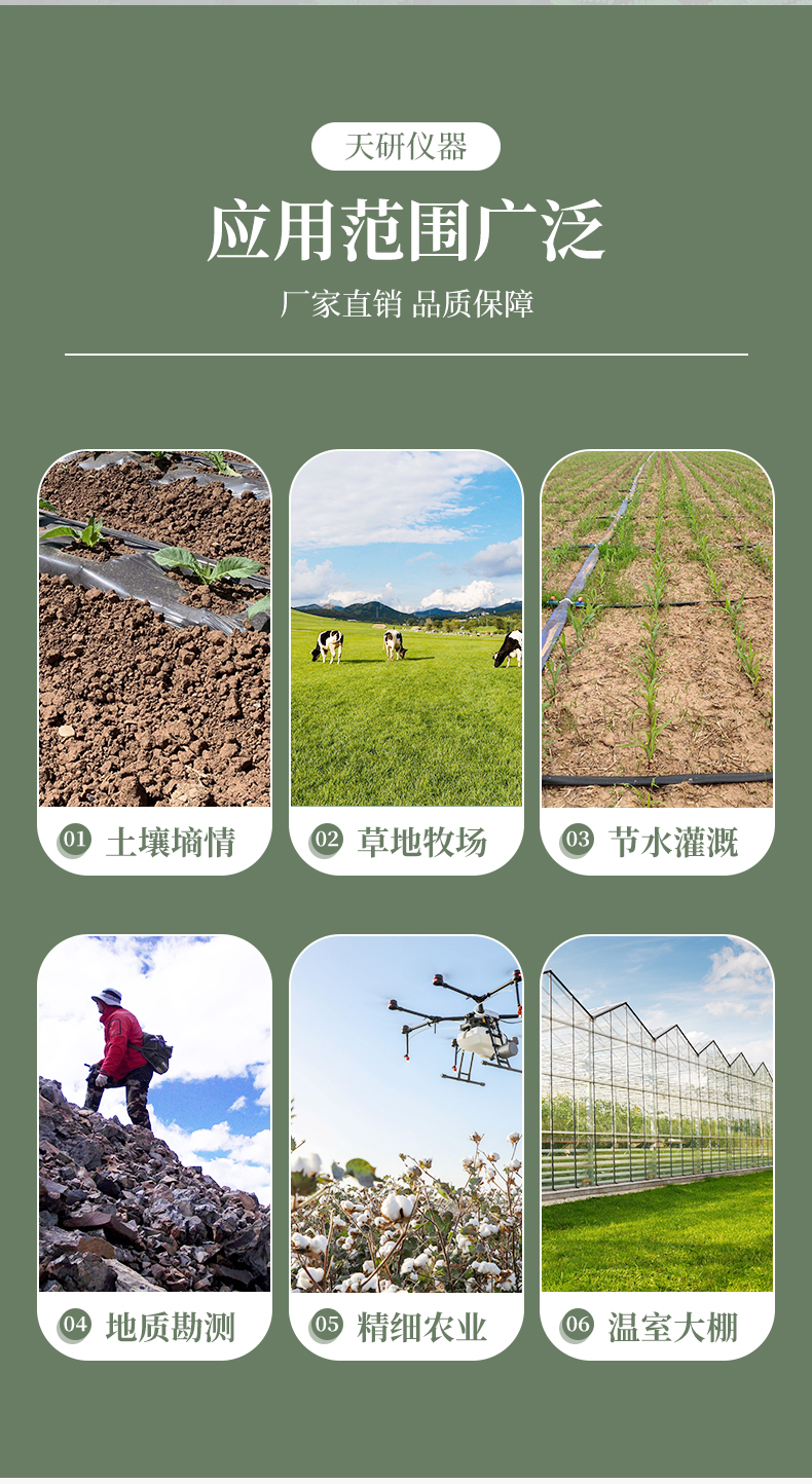 土壤水分測定儀采用FDR頻域反射原理,快速準確測量土壤中含水量,可對多處樣地、不同土壤深度的水分含量進行快速檢測和長期連續(xù)監(jiān)測。廣泛應(yīng)用于土壤墑情檢測、旱作節(jié)水灌溉、精細農(nóng)業(yè)、林業(yè)、地質(zhì)勘探、植物培育等領(lǐng)域。