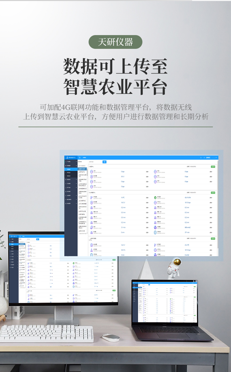 | 儀器可加配4G聯(lián)網(wǎng)功能和數(shù)據(jù)管理平臺,將本機存儲的歷史數(shù)據(jù)無線上傳到智慧云農(nóng)業(yè)平臺,方便用戶進行數(shù)據(jù)管理和長期分析。 | 可選擇記錄模式:手動記錄、自動記錄,自動記錄可設(shè)置記錄時間間隔。 | 采用一體化結(jié)構(gòu)設(shè)計,集液晶顯示儀表+傳感器+便攜手提箱合成在一個便攜式手提箱內(nèi),本機體積小巧,操作簡單,性能可靠,野外攜帶極為方便。 | 大屏幕中文液晶顯示,可實時顯示溫度值、水分值、組數(shù)、低電壓示警,存儲數(shù)據(jù)等,便于野外攜帶作業(yè)。 | 儀表可設(shè)置多種土質(zhì)配方,便于不同土質(zhì)的水分測量。 | 能存儲指定各個點的土壤溫度值、水分值,上位機軟件功能強大,隨時可以通過USB接口將記錄中的數(shù)據(jù)導(dǎo)出到計算機上,并可以存儲為EXCE表格文件,生成數(shù)據(jù)曲線,以供其它分析軟件進一步進行數(shù)據(jù)處理。 |
