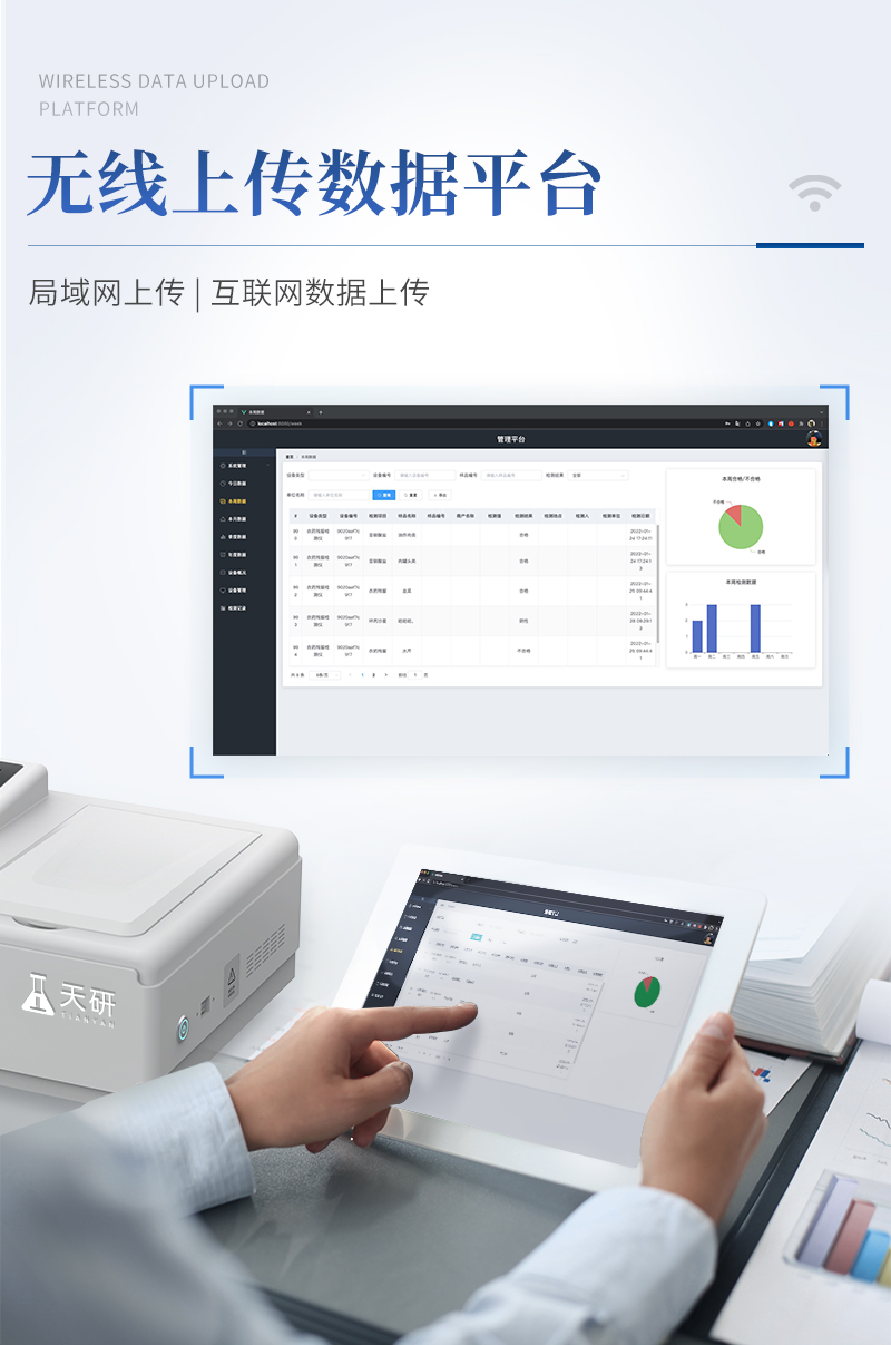 | 儀器采用手提式一體化系統(tǒng)檢測(cè)技術(shù),將分光光度模塊、新型農(nóng)殘檢測(cè)模塊、數(shù)字化管理模塊、無(wú)線通訊模塊高度集成于一體,支持檢測(cè)200種食品安全檢測(cè)項(xiàng)目,同時(shí)預(yù)留升級(jí)檢測(cè)方法。 | 儀器檢測(cè)模塊標(biāo)準(zhǔn)化、智能化,檢測(cè)項(xiàng)目可隨意自由組合。檢測(cè)箱體內(nèi)置多個(gè)標(biāo)準(zhǔn)檢測(cè)單元,檢測(cè)模塊可以調(diào)整配置。 | 顯示屏幕:儀器采用10.1英寸豎向液晶觸摸屏顯,搭配運(yùn)行安卓智能操作系統(tǒng),主控芯片采用ARM Cortex-A7,RK3288/4核處理器,主頻1.88Ghz,操作方便,性能更強(qiáng)。 | 檢測(cè)通道:≥12通道;采用精密旋轉(zhuǎn)比色池設(shè)計(jì),使用同芯片同光源校準(zhǔn)精度,解決不同光源之間的誤差值,更加準(zhǔn)確**。(1-12通道間誤差0.1%,**號(hào):ZL202022821055.2) | 儀器光源:高精度進(jìn)口四波長(zhǎng)冷光源,每個(gè)通道均配置 410、520、590、630nm 波長(zhǎng)光源,標(biāo)配**的光路切換裝置,**光路切換功能可實(shí)現(xiàn)64波長(zhǎng),并且所有檢測(cè)項(xiàng)目可實(shí)現(xiàn)所有通道同時(shí)檢測(cè)。 | 設(shè)備可一鍵校準(zhǔn),自動(dòng)保存校準(zhǔn)數(shù)據(jù),自動(dòng)對(duì)比校驗(yàn),得到精準(zhǔn)光源,采用Android SP存儲(chǔ)數(shù)據(jù),光源數(shù)據(jù)永不丟失,方便每一次使用。 | 通訊接口:配備無(wú)線通信模塊、4G(APN)通訊模塊、藍(lán)牙傳輸,同時(shí)具有雙USB接口以及RJ45網(wǎng)線接口,可以多方式實(shí)現(xiàn)數(shù)據(jù)保存及數(shù)據(jù)傳輸 | 存儲(chǔ)方式:支持U盤存儲(chǔ),標(biāo)準(zhǔn)USB接口,免驅(qū)動(dòng)安裝。檢測(cè)結(jié)果存儲(chǔ)容量20萬(wàn)條以上,可生成Excel表格進(jìn)行拷貝,并具有登錄保護(hù)功能。 | 智能化操作系統(tǒng): | 1)操作系統(tǒng):儀器可在同一檢測(cè)界面自動(dòng)對(duì)應(yīng)相關(guān)檢測(cè)通道,一次性選擇1-12個(gè)樣品名稱,無(wú)需退出界面,節(jié)省操作時(shí)間。并可以對(duì)每個(gè)通道屬性和樣品信息單獨(dú)進(jìn)行編輯,例如送檢單位、人員,檢測(cè)人員等,打印時(shí)勾選打印顯示。 | 2)數(shù)據(jù)集成系統(tǒng):設(shè)備首頁(yè)自動(dòng)匯總分析檢測(cè)數(shù)據(jù),包含:周檢測(cè)數(shù)據(jù)、月檢測(cè)數(shù)據(jù),全部檢測(cè)總數(shù)量,均包含檢測(cè)總數(shù),合格數(shù),不合格數(shù),以及相關(guān)柱形分析圖,各項(xiàng)檢測(cè)數(shù)據(jù)一目了然,無(wú)需電腦查詢,更加快捷直觀。 | 3)數(shù)據(jù)庫(kù)系統(tǒng):十幾項(xiàng)數(shù)據(jù)庫(kù)分類管理儀器:包含項(xiàng)目類型、項(xiàng)目數(shù)據(jù)、檢測(cè)數(shù)據(jù)、歷史記錄、國(guó)標(biāo)信息、曲線信息、采樣信息、檢測(cè)信息、受檢信息、復(fù)核信息、圖表信息、光源校準(zhǔn)信息、打印樣式信息、樣品庫(kù)信息等等,數(shù)據(jù)庫(kù)之間互相協(xié)調(diào)聯(lián)動(dòng)保證數(shù)據(jù)的真實(shí)完整性。同時(shí)產(chǎn)品數(shù)據(jù)庫(kù)以及歷史檢測(cè)記錄支持一鍵檢索功能。 | 4)限量規(guī)判系統(tǒng):具有限量查詢、添加物質(zhì)合規(guī)判定系統(tǒng)。檢測(cè)出結(jié)果后,系統(tǒng)自動(dòng)調(diào)用系統(tǒng)數(shù)據(jù)庫(kù)中相關(guān)國(guó)標(biāo)進(jìn)行比對(duì)判定,客觀顯示判定結(jié)果是否合格。 | 5)項(xiàng)目預(yù)設(shè)系統(tǒng):儀器具有任務(wù)預(yù)設(shè)模塊,一鍵提前預(yù)設(shè),給出方便快捷的新檢測(cè)方案,每一個(gè)任務(wù)分別可以設(shè)置不同的樣品、批次、編號(hào)、來(lái)源、備注、抽樣信息、檢測(cè)信息、受檢信息、復(fù)核信息等更多信息。樣品送檢時(shí)一鍵調(diào)取保存信息,并可多次調(diào)取,大大提高檢測(cè)效率。 | 6)數(shù)據(jù)監(jiān)管系統(tǒng):同步對(duì)接監(jiān)管平臺(tái),數(shù)據(jù)可局域網(wǎng)和互聯(lián)網(wǎng)數(shù)據(jù)上傳,檢測(cè)結(jié)果可選擇直接傳至食品安全監(jiān)管平臺(tái)。進(jìn)行區(qū)域食品安全監(jiān)管及大數(shù)據(jù)分析處理與數(shù)據(jù)統(tǒng)計(jì),檢測(cè)區(qū)域食品安全長(zhǎng)短期動(dòng)態(tài),達(dá)到食品安全問(wèn)題預(yù)估、預(yù)警。 | 7)打印系統(tǒng):內(nèi)置全新打印機(jī),新創(chuàng)自定義打印方式,可按需靈活勾選控制:產(chǎn)品合格證(國(guó)家農(nóng)業(yè)部標(biāo)準(zhǔn)要求),二維碼,抽樣信息、檢測(cè)信息,受檢信息、復(fù)核信息、抽樣日期、檢測(cè)日期等信息的打印。 | 供電模式:儀器交直流兩用,直流12V供電,可連接車載電源,可配6ah大容量充電鋰電池,電量可實(shí)時(shí)顯示,方便戶外流動(dòng)測(cè)試。 | 膠體金檢測(cè)模塊:采用雙通道CMOS成像處理技術(shù)及膠體金免疫層析技術(shù),可同時(shí)讀取雙膠體金卡數(shù)據(jù),自動(dòng)采集、處理分析,將檢測(cè)結(jié)果顯示,并可根據(jù)參考限值自動(dòng)判斷檢測(cè)結(jié)果,可檢測(cè)常見的獸藥殘留、生物毒素、抗生素、違禁添加物等。 | 1)探測(cè)技術(shù):CMOS成像探測(cè); | 2)檢測(cè)通道:1個(gè)通道; | 3)檢測(cè)方式:消線法和比色法; | 4)顯示模式:陰性或陽(yáng)性; | 5)曲